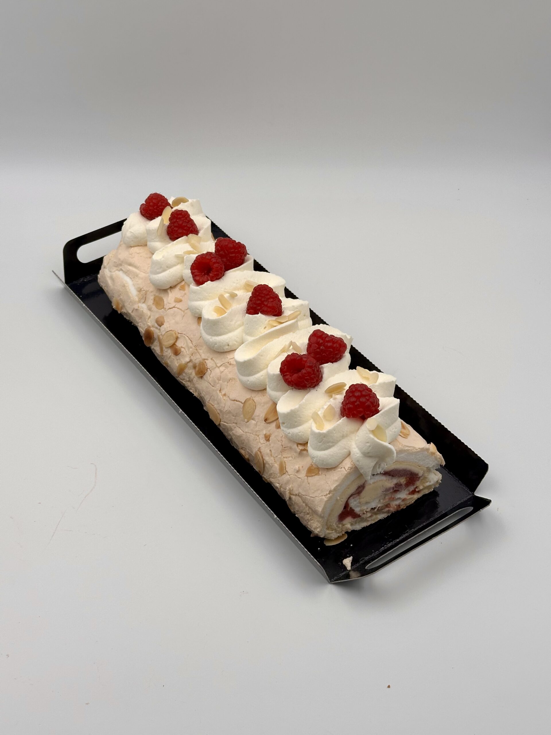 Brazo relleno de crema mascarpone y confit de frambuesa